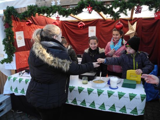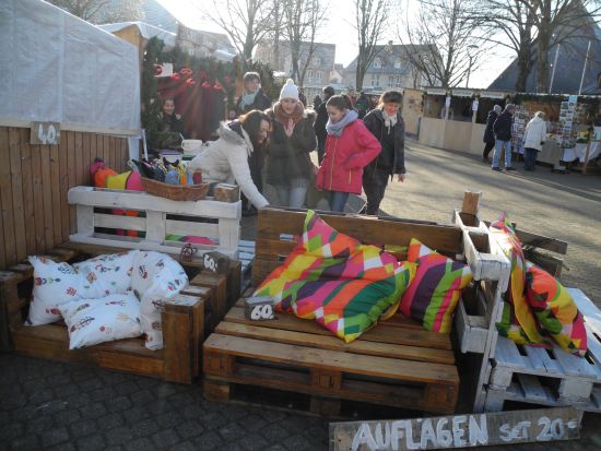 Auch in diesem Jahr verkauften wir, die Sechst- und Siebtklässeler, mit Unterstützung unserer Eltern und Lehrer wieder sehr erfolgreich Waffeln. Außerdem verkauften wir Siebtklässler noch Pallettensofas, welche wir selbst gebaut hatten.
